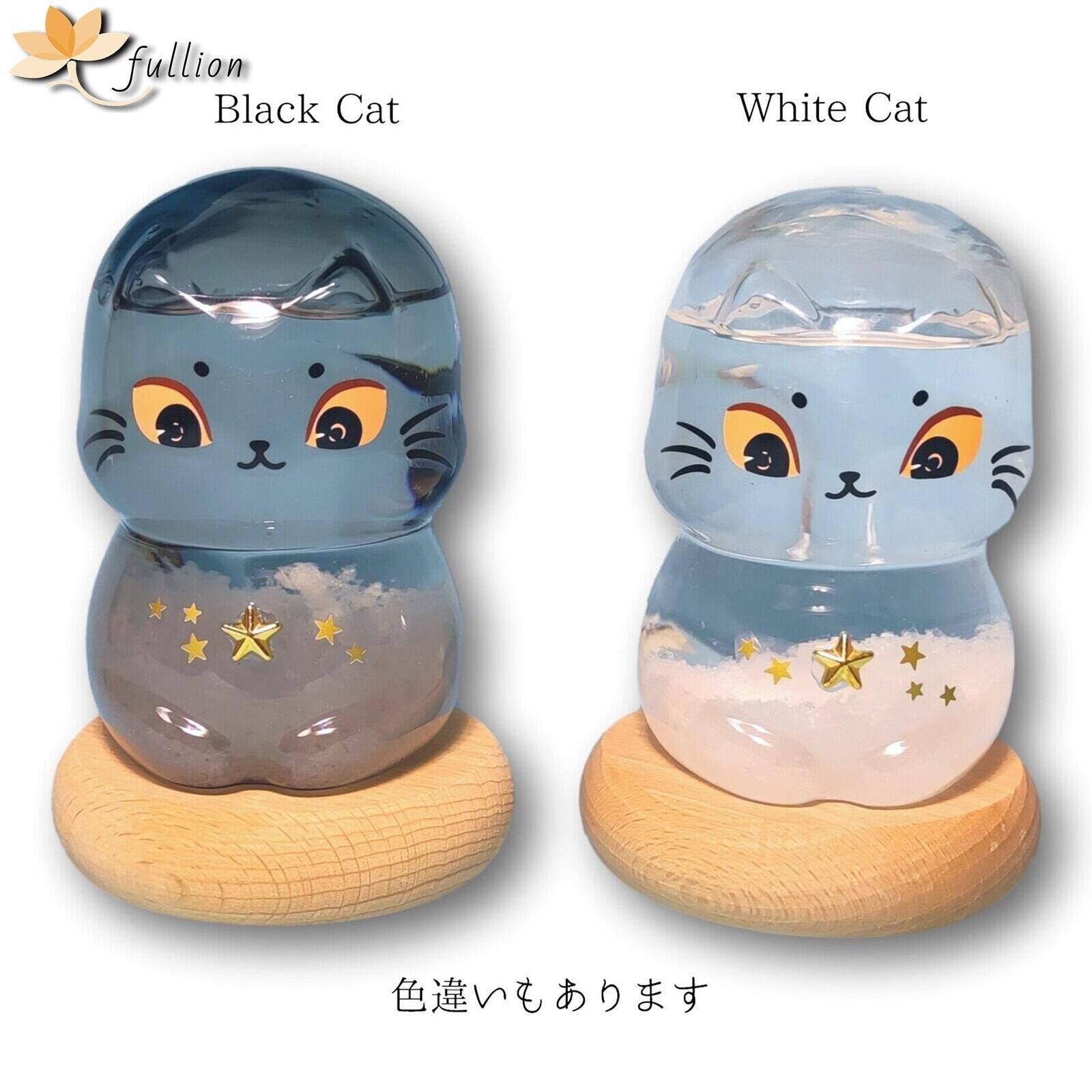 ストームグラス Aquro Crysta ウッドベース ナチュラル 白猫です。